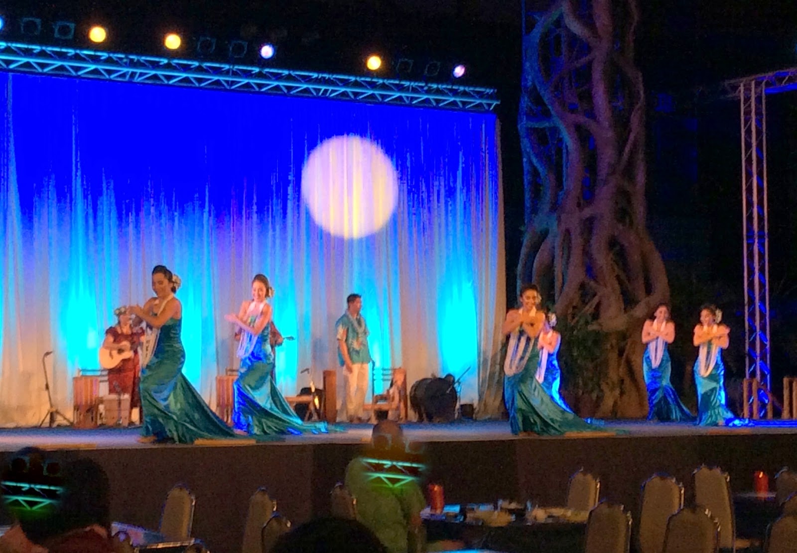 還有現場夏威夷秀可看;餐廳和秀場相連結,佔地