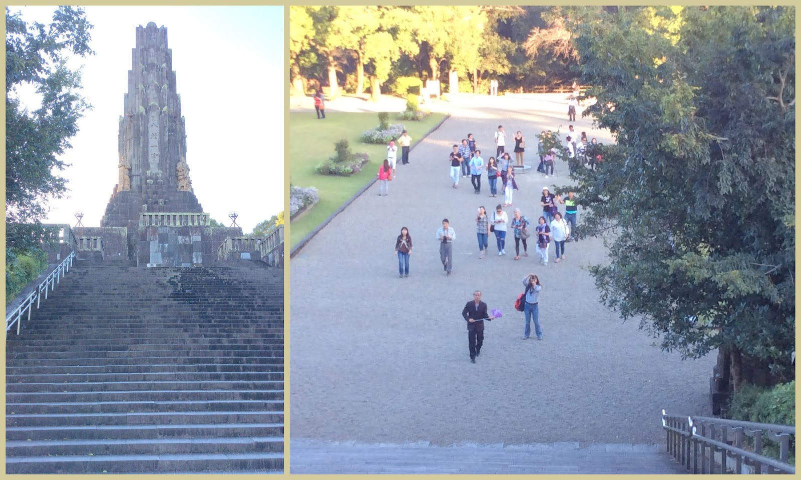平和之塔的門上刻有「神武天皇出兵圖」。
