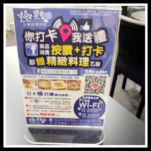 打卡送好禮,按照立牌說明進行,有精緻料理相送;