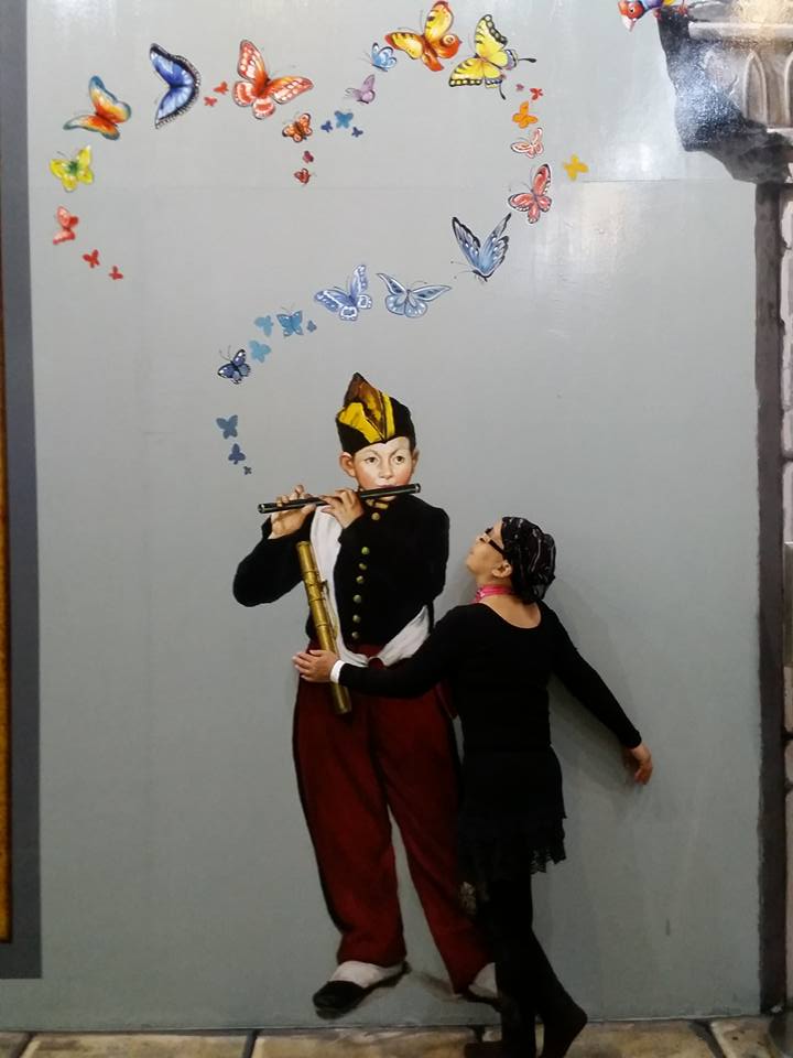 這一幅[姊弟共騎]揚名國內外,瘋迷一時,成為遊客爭拍的壁畫。