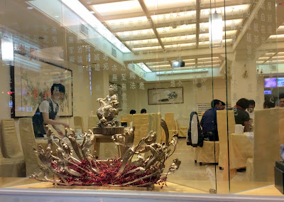 首先端上桌的[白玉絲卷]用腰果和山藥入菜,山藥刨成絲狀,