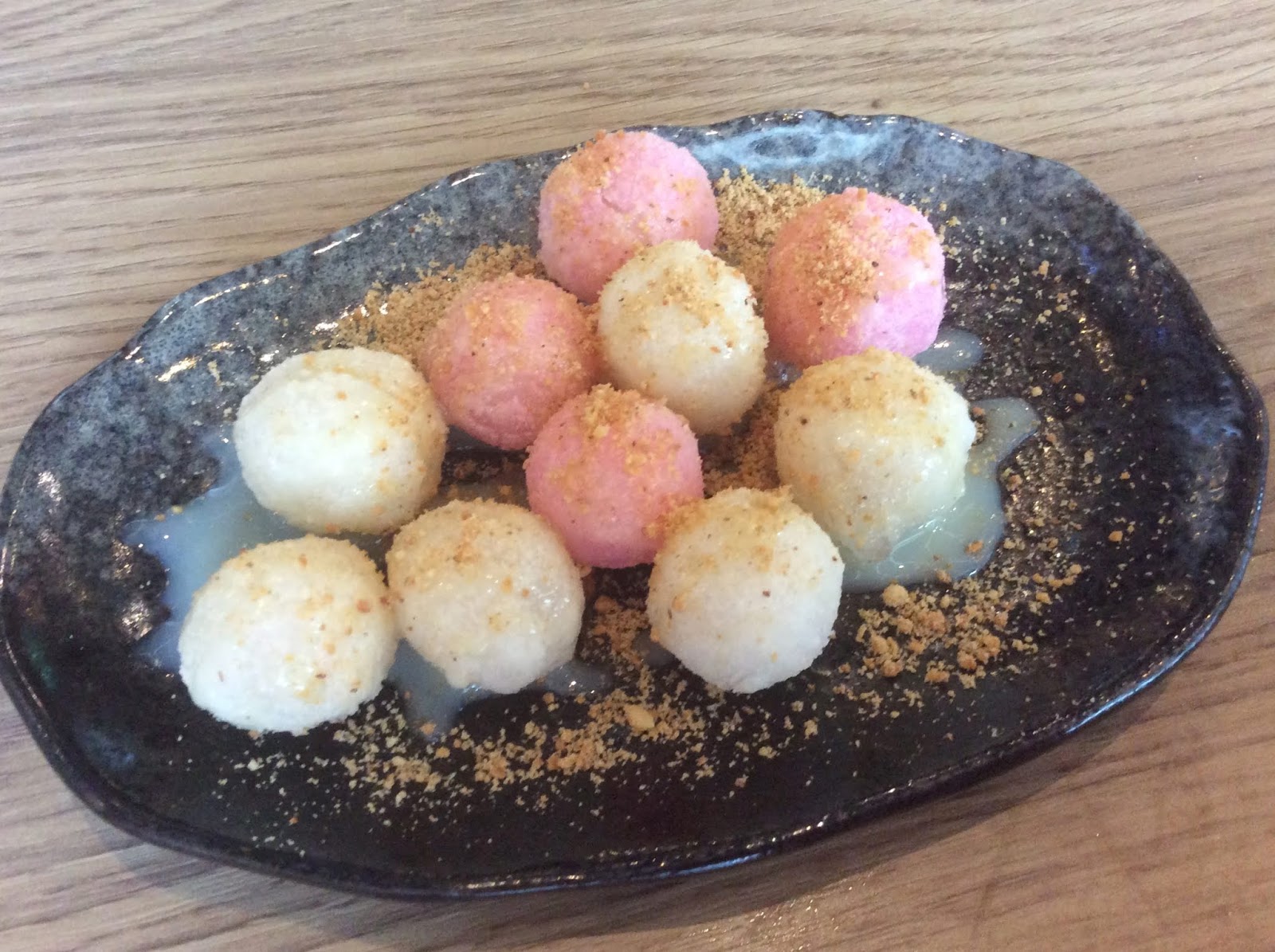 店家的誠意十足,用微炸過的小湯圓,淋著煉乳、撒了花生粉,