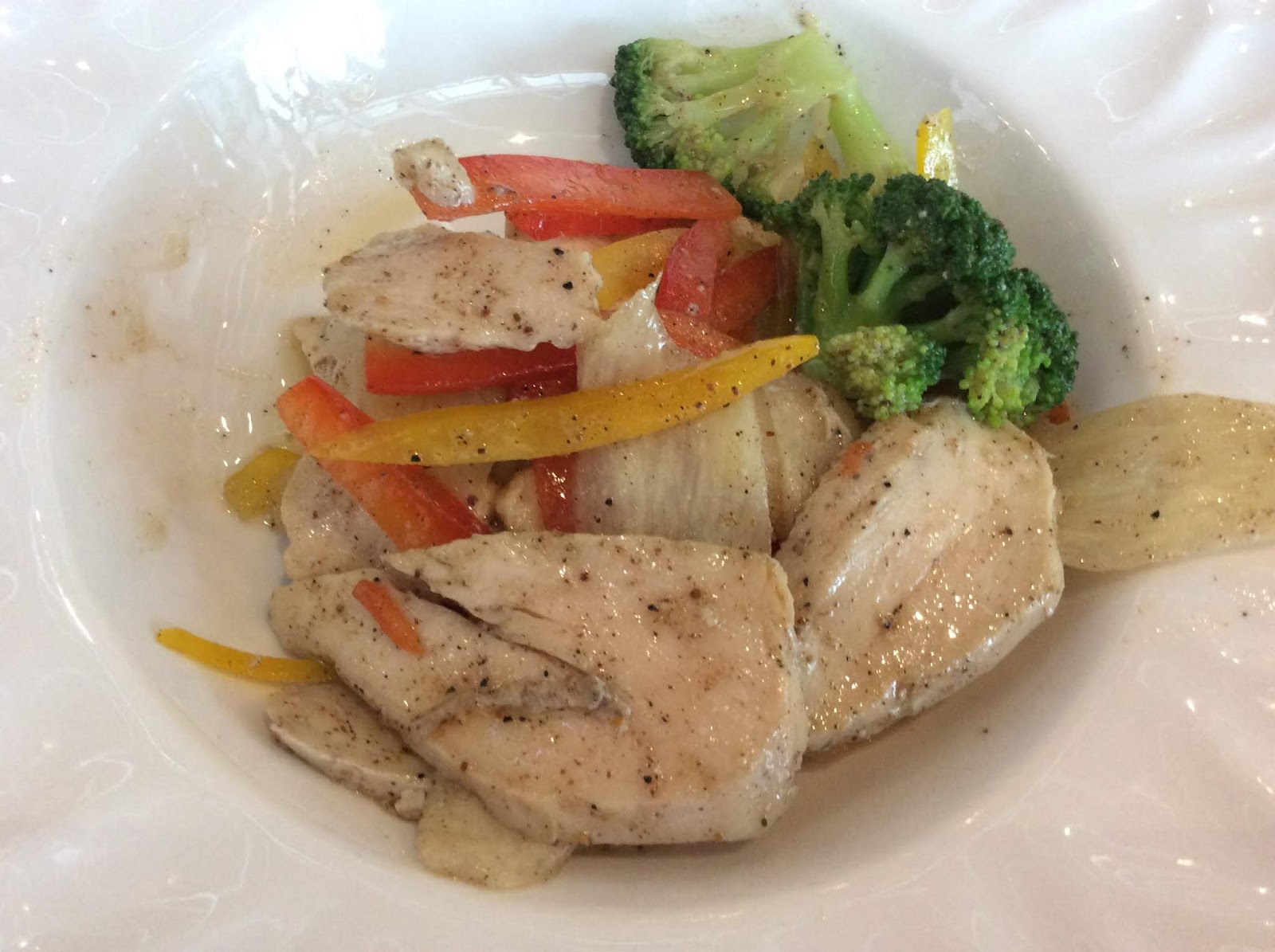 烹煮雞胸肉,保持雞肉滑嫩口感,甜椒、洋蔥、花椰菜、