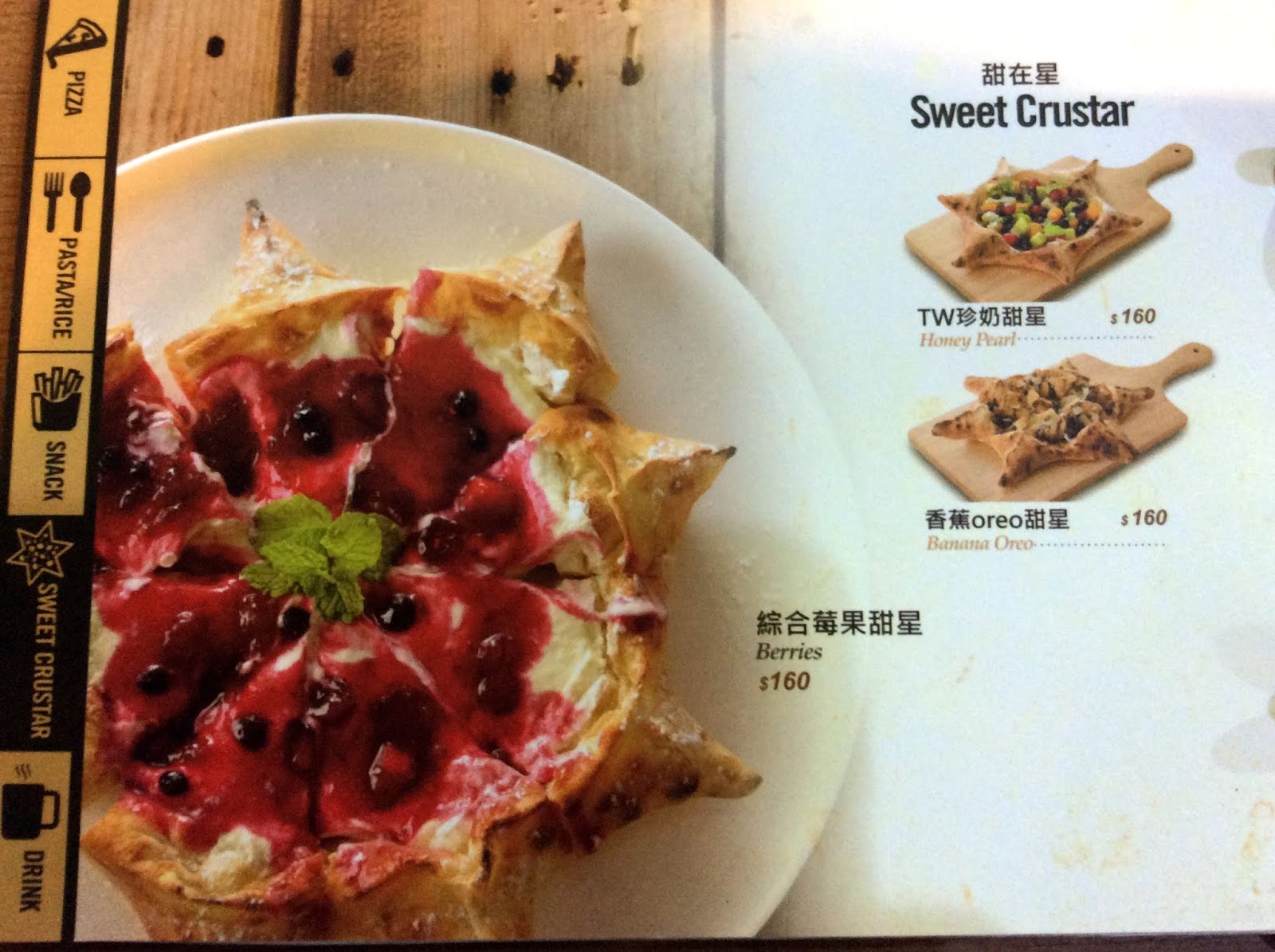 香Q味美的創意比薩。業者運用各個牆面,用圖片來介紹餐廳