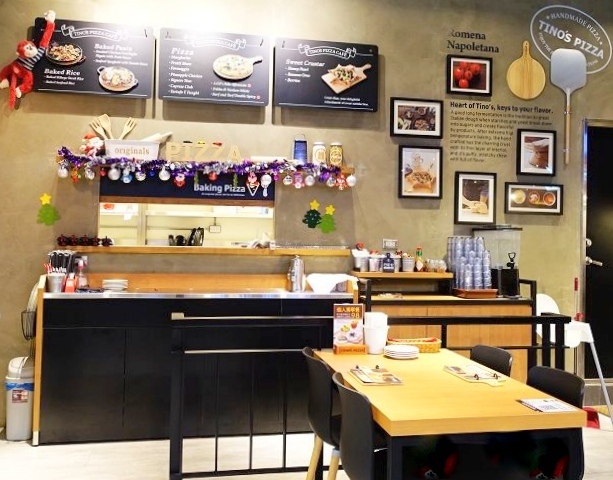 『Tino's Pizza Cafe 堤諾比薩(家樂福中原店)』以黑色元素搭襯