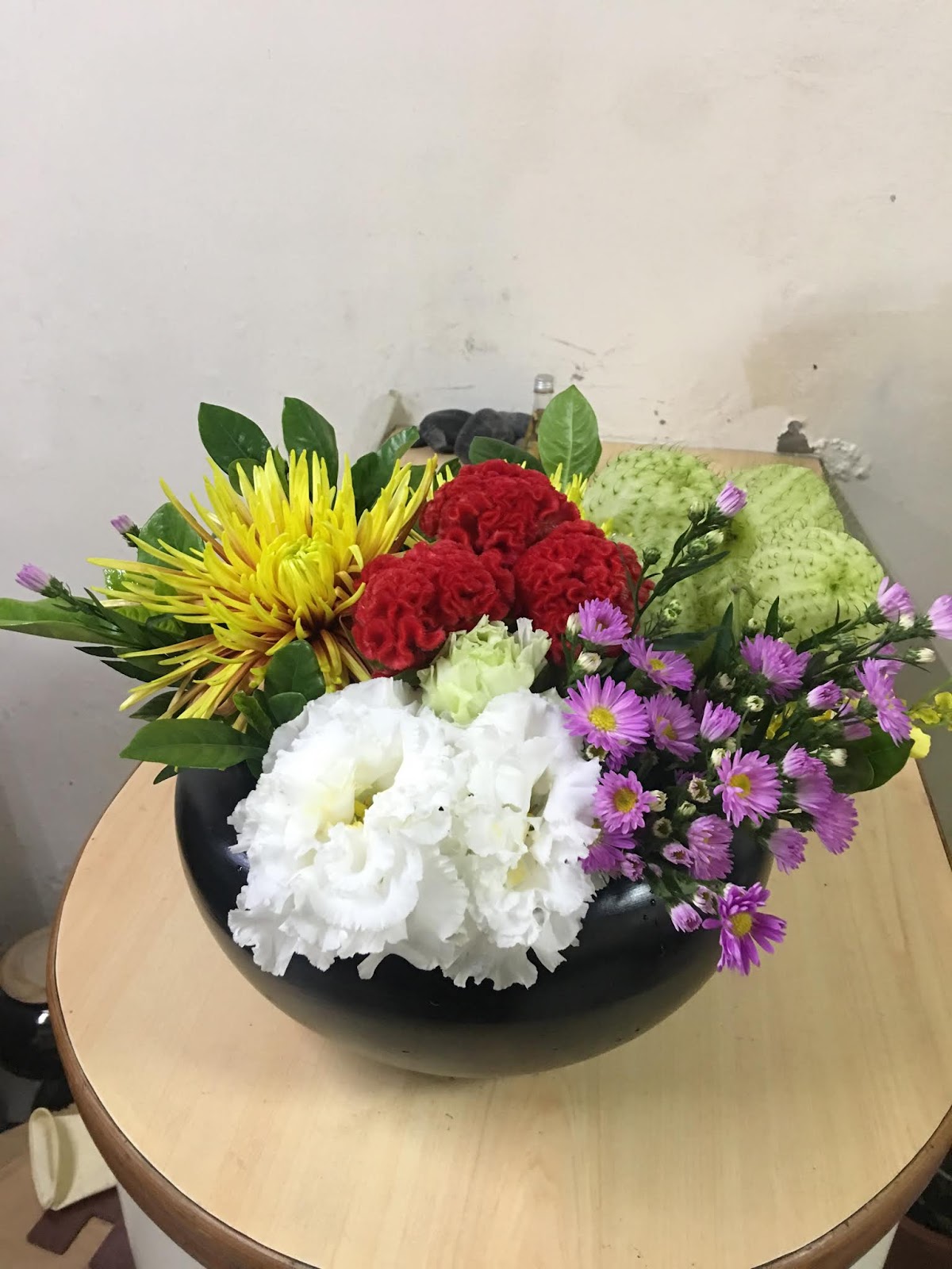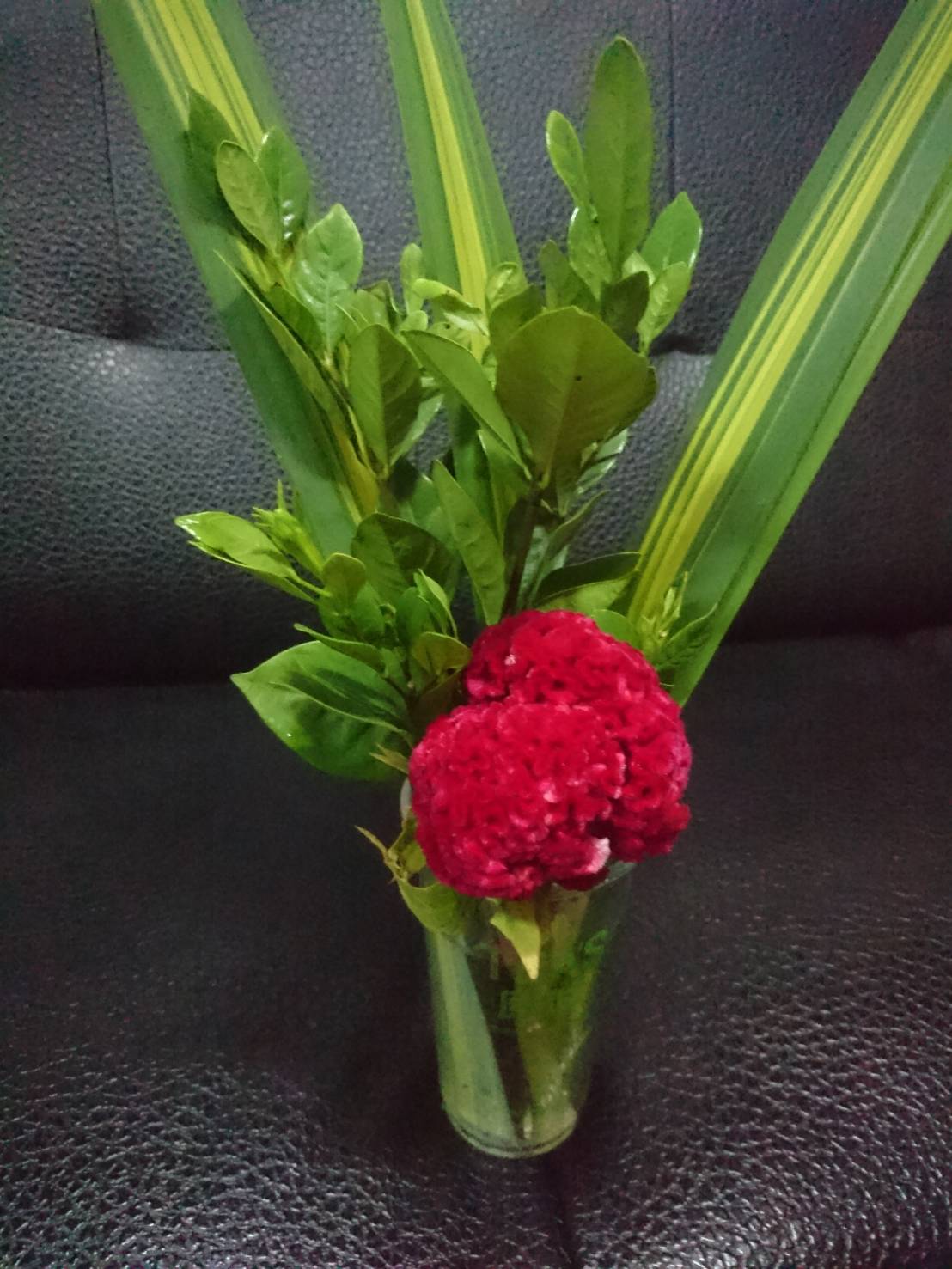 雞冠花-紅 3 、梔子葉 1/4把