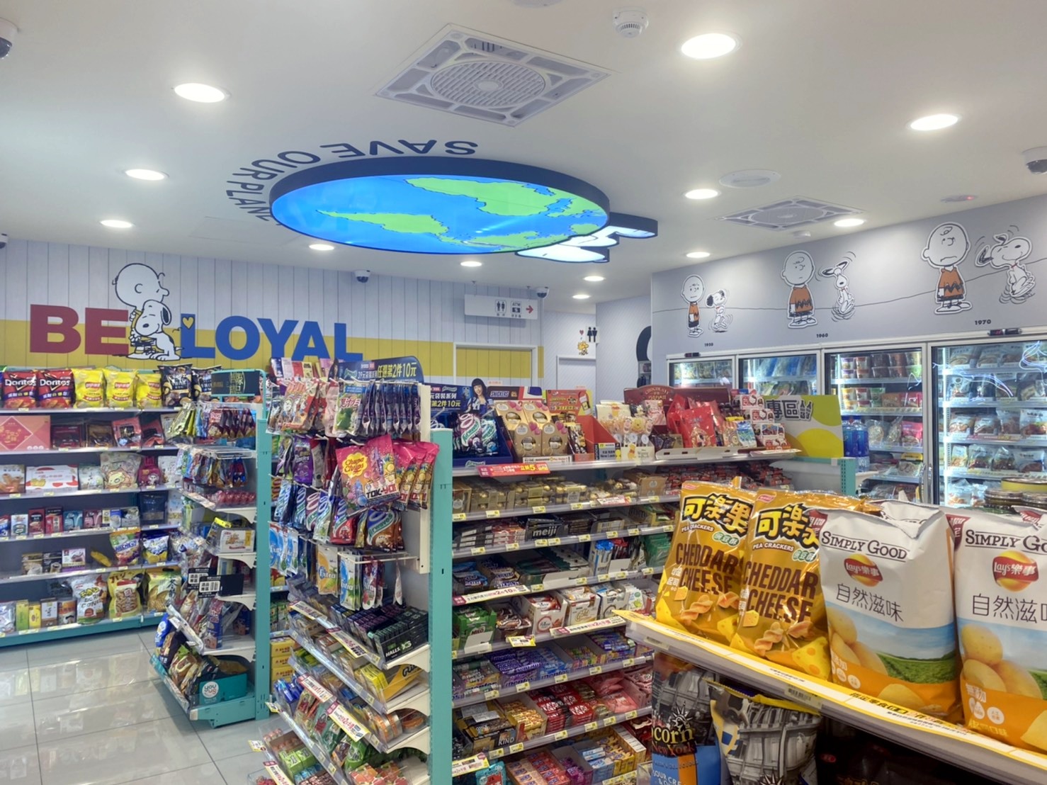 整間7-11都是滿滿的史努比,還增設GO Green立體燈箱,